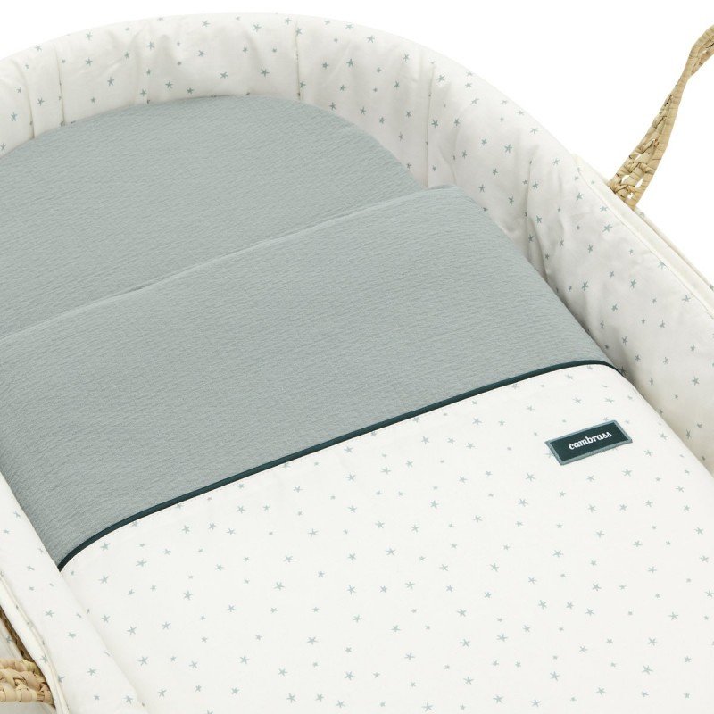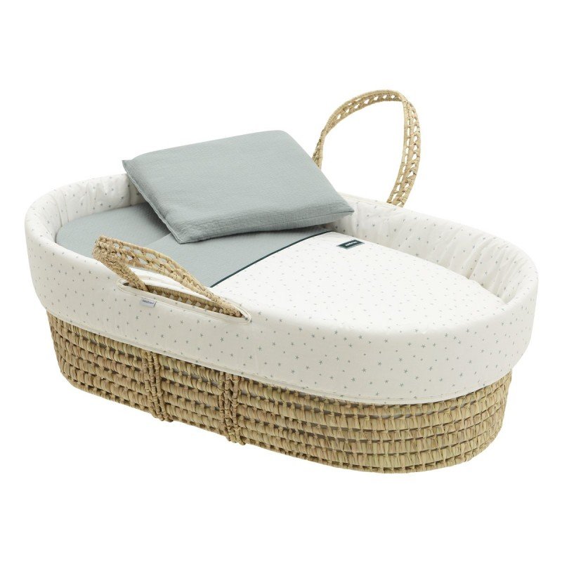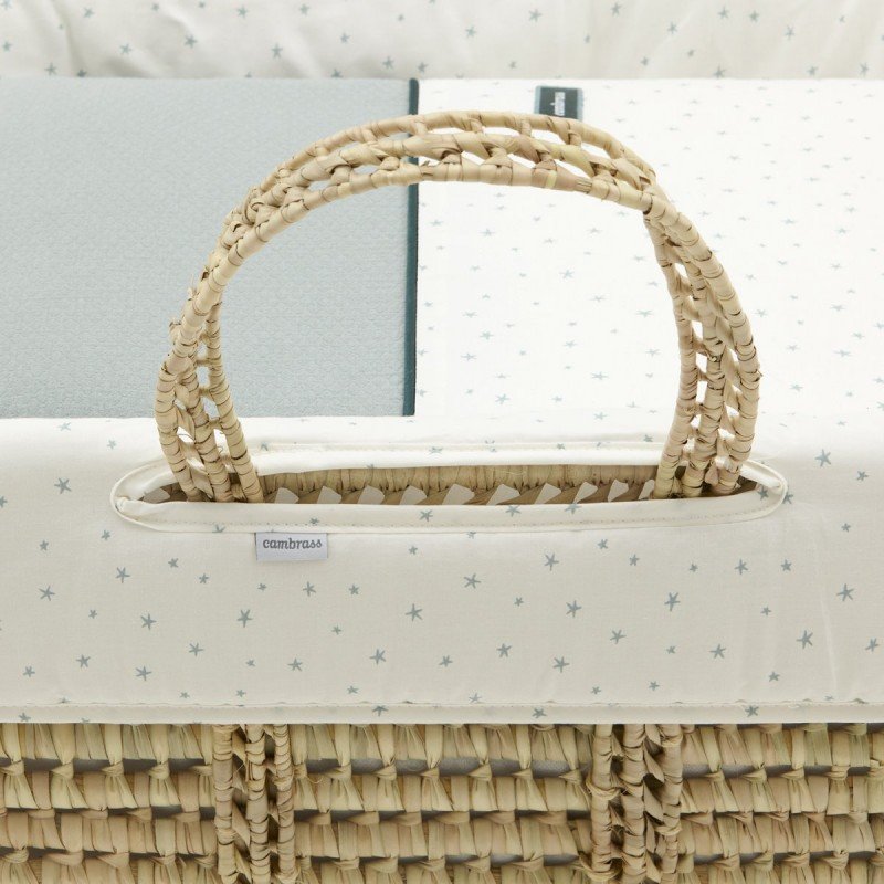 El moisés de palma acolchado de Cambrass, está indicado para los primeros meses de vida del bebé y gracias a sus asas su transporte es muy sencillo. Consta de una base de mimbre, colchón, colcha, cojín y vestidura, que puede coordinarse con la decoración de la habitación. Además cuenta con todos los certificados que garantizan la seguridad del bebé velando por su salud ya que el mimbre del moisés está tratado para la eliminación de pequeñas larvas de psocópteros que en determinadas ocasiones se encuentran en las hojas de palma utilizadas en la fabricación de los moisés. Este capazo es adecuado para niños que no pueden sentarse por si solos, girarse y que no pueden empujarse a si mismos con sus manos y rodillas. Máximo peso del niño: 9kg. Si el moisés está destinado a ser usado con un soporte, comprobar que las dimensiones de éste último se corresponden con aquellas de la base del moisés Medidas de la base del moisés: 390x800 mm. Fabricado en España. Por Cambrass